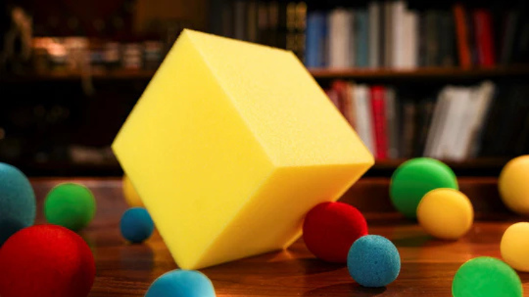 Produisez visuellement un cube géant en éponge pour conclure en beauté votre numéro avec des balles en éponge !