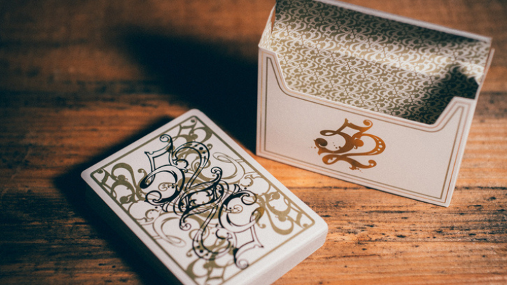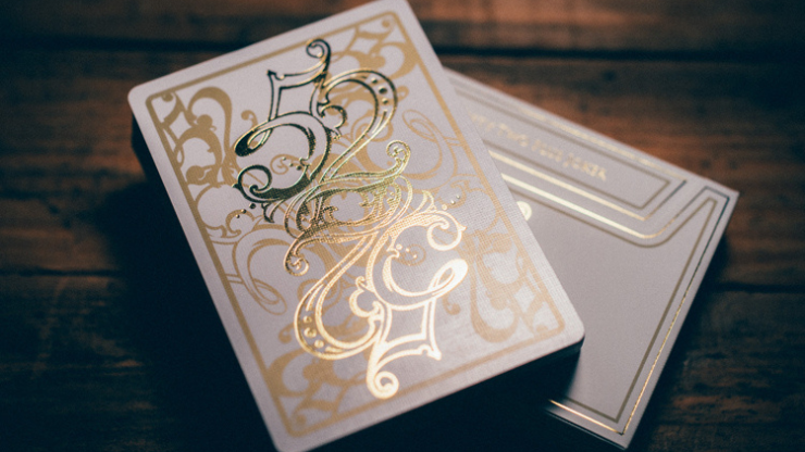 Jackson Robinson a conçu une version très limitée et rare de ce jeu pour la convention 52 Plus Joker de cette année. Présenté dans un coffret solide, le jeu en édition argentée co? »te 45 $ et n’est disponible que pour les membres de 52 Plus Joker. Comme seulement 500 jeux ont été produits, nous avons été ravis que Jackson autorise The Expert Playing Card Co. à imprimer une variante dorée du jeu pour nos clients ! L’édition dorée se présente dans un étui à chargement latéral au design époustouflant, imprimé sur un papier synthétique innovant pour plus de durabilité, une exclusivité EPCC ! Ce papier est extrêmement souple, imperméable et résistant à l’usure. Les cartes sont fabriquées de manière experte selon les normes rigoureuses de l’Expert Playing Card Company. De plus, les cartes présentent les nouvelles faces personnalisées accrocheuses de Jackson Robinson, une impression dorée à chaud au dos de chaque carte et une encre métallique sur les faces des cartes de cour. Enfin, nous avons utilisé notre finition Master Finish haut de gamme pour que le jeu soit extrêmement agréable à manipuler. Ce jeu est un véritable bijou : un chef-d’? »uvre en termes de design et une qualité de fabrication inégalée ! C’est un jeu vraiment spécial qui se vendra très rapidement !