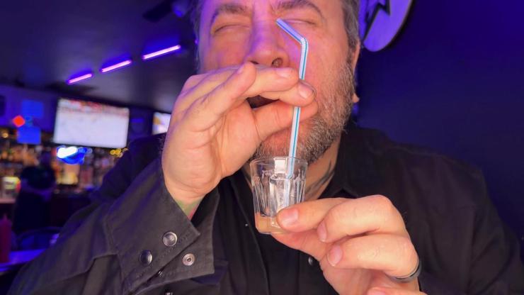Vous placez une paille dans une boisson, vous la portez à votre oeil, puis vous aspirez tout le liquide hors du verre !
