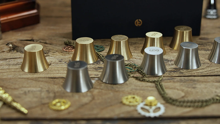 Cet ensemble classique est une variation sophistiquée des Chink-a-Chink originaux de Dai Vernon. Nous avons porté le niveau de fabrication encore plus haut et ajouté une version supplémentaire en argent. Cet ajout élargit les possibilités et permet à ce grand classique, vieux de près d’un siècle, de retrouver une nouvelle vitalité dans la magie contemporaine.