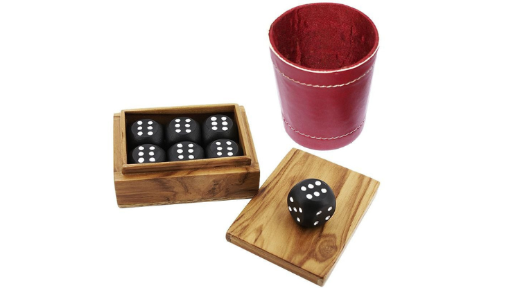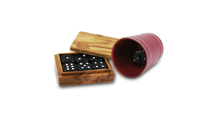 Aussi impossible que cela puisse paraître, cela fonctionne tout seul. Si vous savez lancer un dé, vous pouvez réaliser cet effet. Il est rendu encore plus spécial par les matériaux de haute qualité utilisés : une boîte en teck faite à la main, une coupe en cuir et de gros dés noirs. Vous serez ravi de l’impression professionnelle que cela crée.