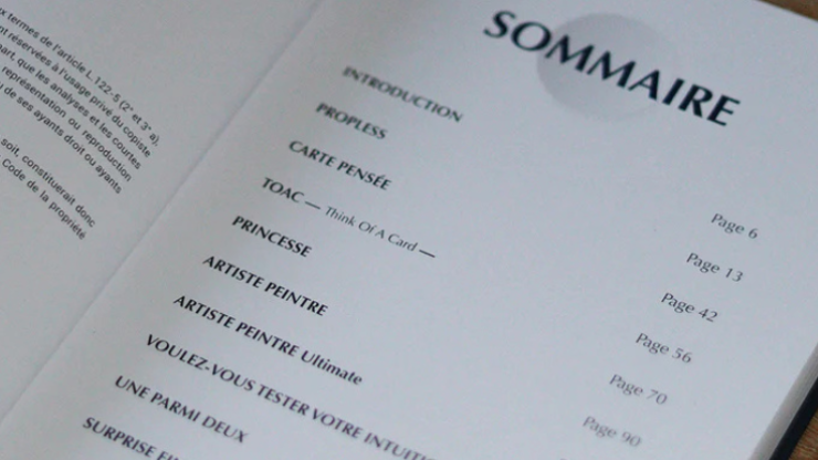 Cet ouvrage présente aux lecteurs huit effets de mentalisme avec des cartes. Ces effets tournent autour du thème de la carte pensée par un volontaire et retrouvée par l’artiste grâce à ses prétendus pouvoirs mentaux.
