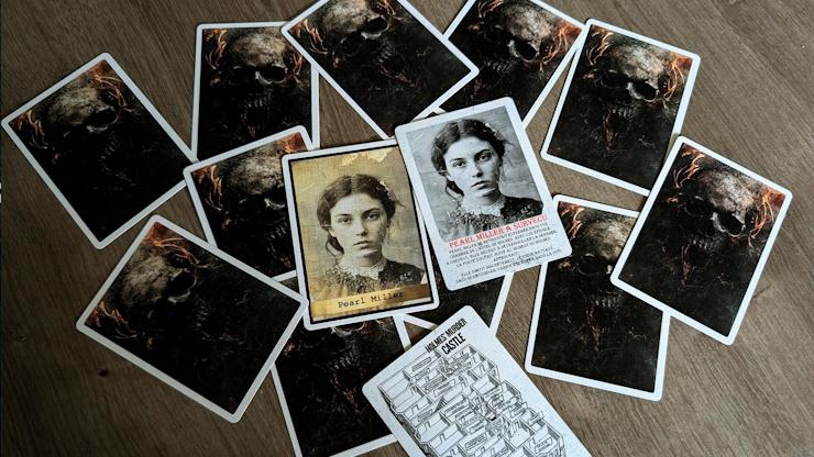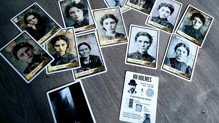 Dans cette routine, vous introduisez rapidement l’histoire du célèbre tueur en série H.H. Holmes. Vous présentez ensuite 12 cartes représentant des femmes, en expliquant que l’une d’entre elles parviendra à s’échapper de son h?’tel. Une carte de prédiction est placée sur la table dès le début. Après trois phases d’élimination (visuelle, choix inversé et choix numérique), une seule carte reste, révélant l’unique survivante.