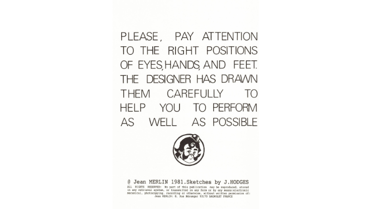 Les routines sont présentées sous forme de feuilles illustrées, accompagnées de ** dessins précis réalisés par J. Hodges** , indiquant la position des mains, des yeux et des pieds pour exécuter chaque mouvement avec justesse. Les titres et légendes sont rédigés en plusieurs langues : français, anglais, allemand, italien, espagnol et néerlandais, rendant ce matériel accessible à un large public international.