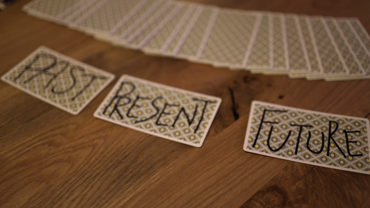 L’interprète présente les arcanes majeurs d’un jeu de cartes de tarot et montre que sur trois des cartes, un seul mot est écrit. Une carte indique Passé, une autre Présent et la troisième indique Futur. Les cartes sont mélangées, puis les visages sont montrés, tandis que l’interprète décrit que les cartes représentent toutes quelque chose d’important dans la vie d’une personne. L’interprète demande au spectateur de choisir une carte pour représenter son passé, une autre pour représenter son présent et la dernière carte pour représenter son avenir. Le public peut librement nommer n’importe quelle carte qu’il souhaite. Ces cartes sont clairement disposées sur la table, et l’interprète donne au public une courte lecture de tarot avant de retourner les cartes sélectionnées pour révéler que le public a mystérieusement réussi à sélectionner parfaitement les cartes avec les mots Passé, Présent et Futur écrits dessus. le verso des cartes qu’ils ont choisies pour leur lecture.