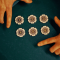Vous présentez une poignée de magnifiques jetons de poker sérigraphiés, marqués de un à six. Le magicien mélange les jetons face cachée et en met un au hasard dans sa poche. Le spectateur peut nommer librement n’importe quel nombre de un à six. Les autres jetons de poker sont révélés et le seul qui manque porte le numéro exact nommé par le spectateur.