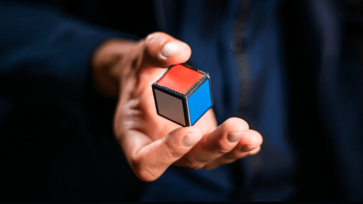 Imaginez que vous effectuez une expérience de mentalisme en demandant à votre spectateur d’écrire le nom d’un ami ou d’un être cher sur un papier. Ensuite, pliez ce papier en un petit carré et placez le à l’intérieur du cube. Vous pouvez utiliser un calepin à impression ou votre technique de peek préférée pour obtenir l’information du spectateur.